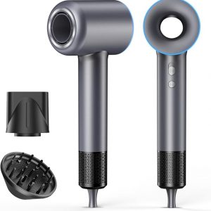 High Speed Hair Dryer,200 Millions Negative Ionic Blow Dryer,Powerful 1500W Fast Drying Low Noise Blow Dryer,Temperature-Control Hairdryer with Diffuser & Nozzle (Gray)
