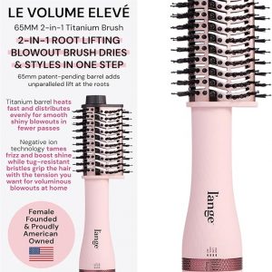 L’ANGE Hair Le Volume Elevé 65MM 2-in-1 Titanium Brush Dryer | Dry and Style | Unique Teardrop Shape Barrel | 3 Heat Settings | 360° Vented Airflow | Ionic Technology for Frizz-Free Styling (Blush)