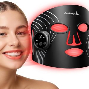 Red Light Therapy Mask for Face, Wireless LED Face Mask, Rechargeable and Adjustable Timer Design with Digital Display for Home Skincare, Dark Black
