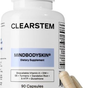 CLEARSTEM – MINDBODYSKIN Hormonal Acne Supplement (5-HTP) – Natural DIM Supplement – Skin Care Vitamins – Hormone Balance, Antioxidants – Gluten Free, Cruelty Free – 30 Servings, 90 Capsules