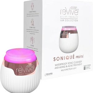 Revive Light Therapy Lux Collection Soniqué Mini, Rechargeable Sonic Face Cleanser Brush with Medical-Grade Blue & Red Light Therapy for Face, Acne & Wrinkle Care, Water-Resistant